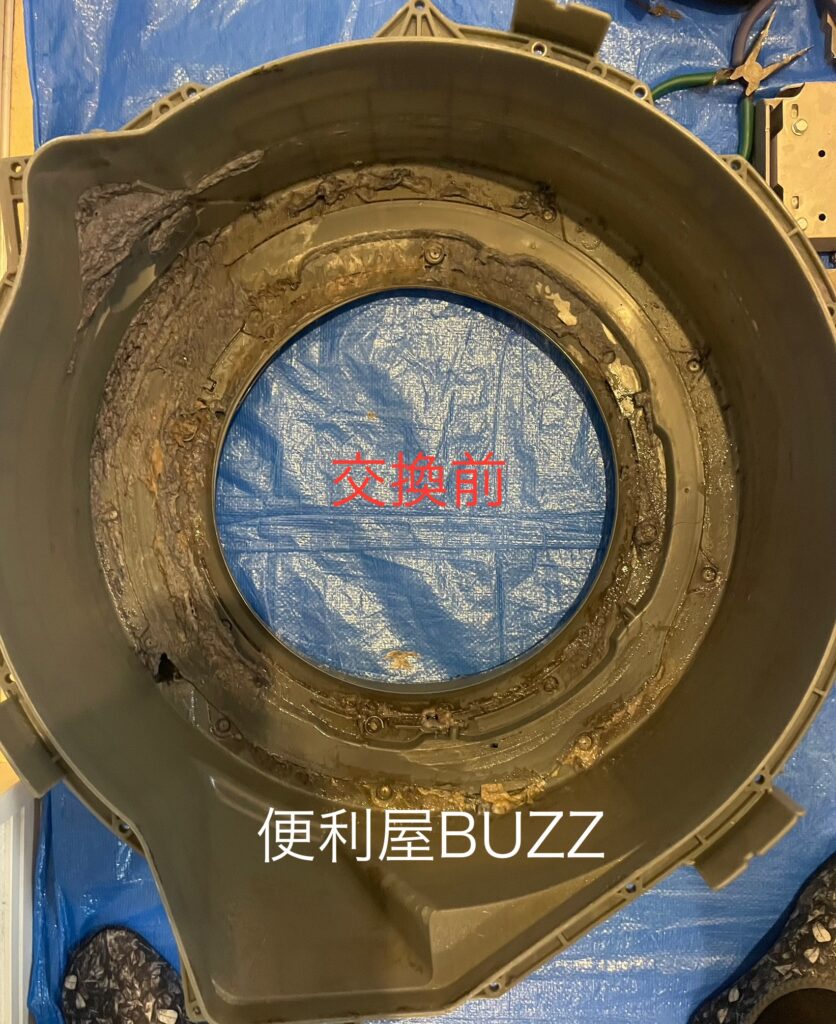 脱水時の振動と密閉不良を防ぐため、劣化していた脱水カバーを交換。 これによりセンサーの誤作動も防止できます。