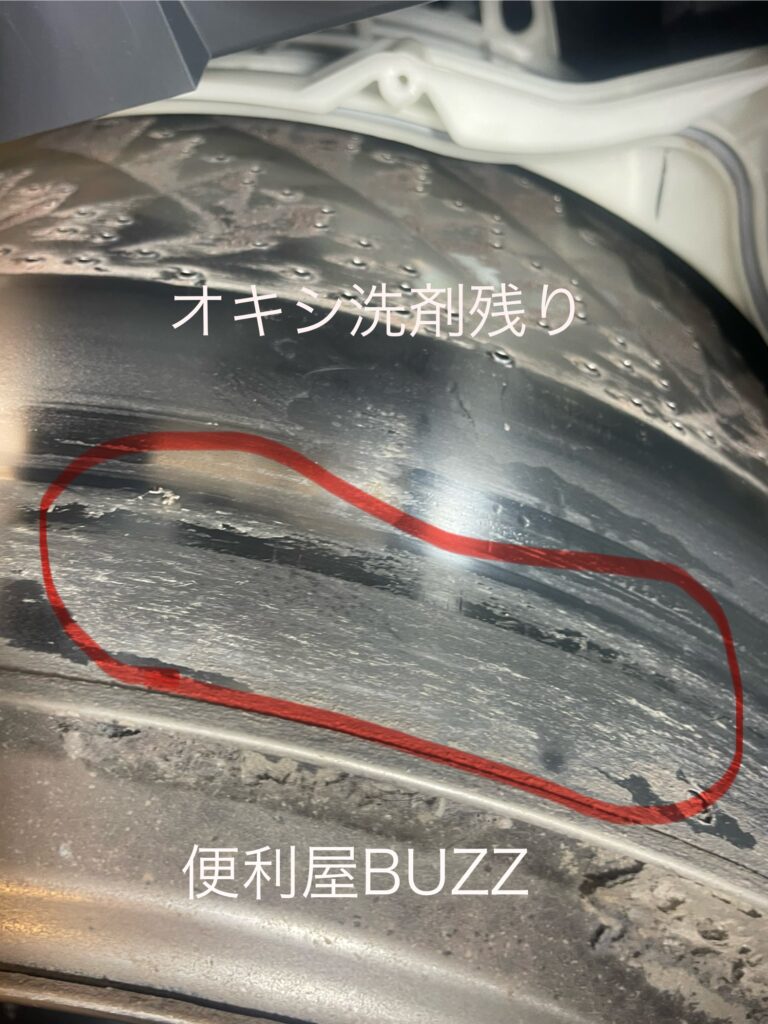 お客様は粉オキシクリーンを直接投入されていましたが、溶かさず投入すると粉が残りやすく、カビや臭いの原因になります。 今後は40〜50℃のお湯で完全に溶かしてから投入することをおすすめしました。
