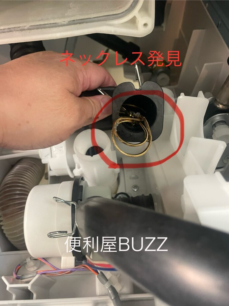異物混入は小さくても大きなトラブルの原因になります。水漏れ、乾燥不良、異音、排水不能、最悪の場合は基盤故障などにつながることがあります。ネックレス一つでも放置すると修理代が高額になる可能性があるため注意が必要です。