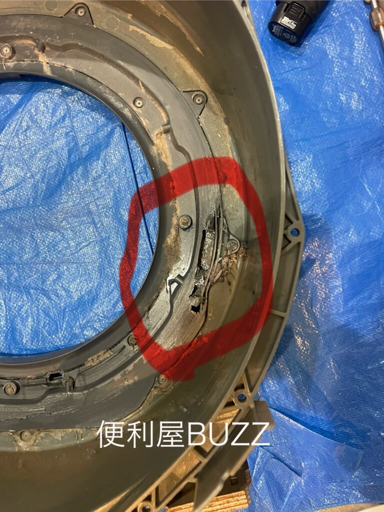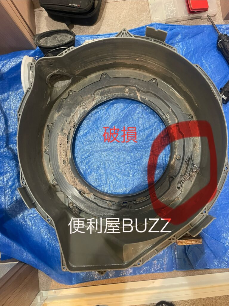 脱水カバーがすでに破損している状態を確認しました。