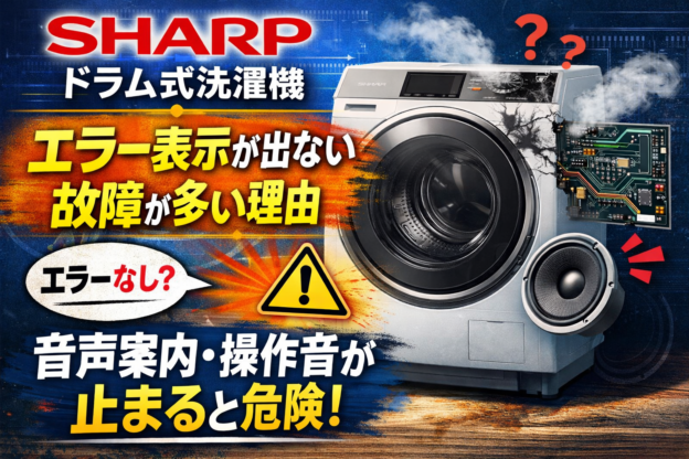 SHARPのドラム式洗濯機では、エラー表示が出ないまま故障が進行するケースが少なくありません。 特に音声案内や操作音が出なくなっている場合、異常に気づくのが遅れやすい傾向があります。